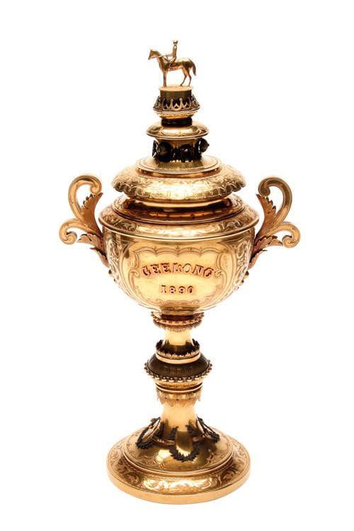 The greatest strengths of the Gallery’s permanent collection are colonial paintings, including a splendid array of early images of Geelong and its wider region such as John Skinner Prout’s lithograph Geelong (1847), and Alexander Webb’s Yarra Street, Geelong (1872); colonial metalwork including Edward Fischer’s Geelong gold cup (1890); English painted porcelain from 1750 to 1850, Worcester, Buckingham Palace card tray (c. 1840–45); works on paper (19th century to the present); and modern and contemporary Australian paintings, sculpture and decorative arts including works by Fred Williams, Ann Thomson, Peter Booth, Juan Davila, Rosalie Gascoigne, Jan Senbergs and John Brack.